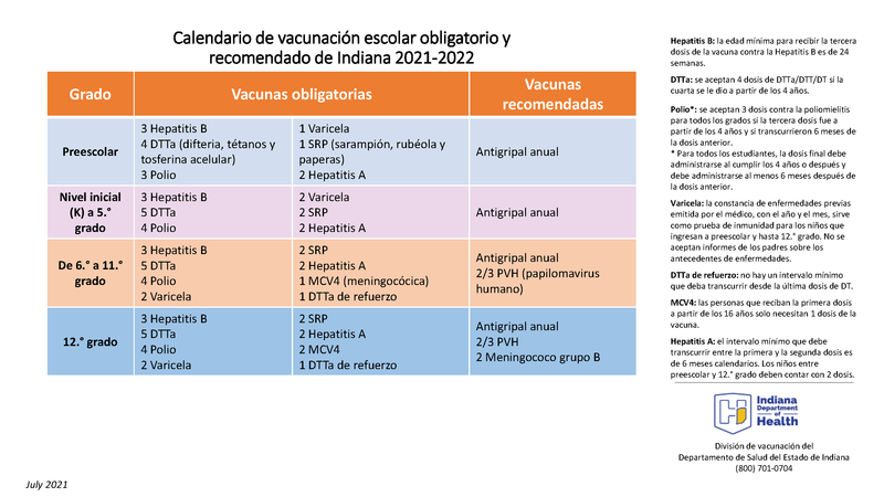 MSD Warren Township, in partnership with the Indiana Immunization Coalition, will be providing a clinic to accommodate the flu shot, immunizations required for school-age children, and the COVID vaccine for individuals 5  years and older on Tuesday, Feb. 8 at Moorhead Community Resource Center from 4-7 p.m. Families are encouraged to pre-register for this event. The registration link for the immunization clinic is patients.vaxcare.com/registration.  After clicking on the link, enter the enrollment code, IN65942, and then select Warren Schools-2/8. Below are the required immunizations for school-age children.